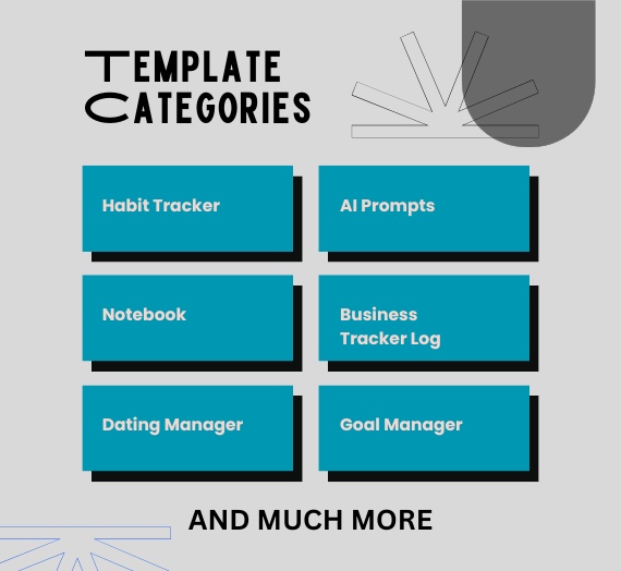 ✅ Work & Business – Project trackers, CRM systems, meeting notes, and goal-setting dashboards.