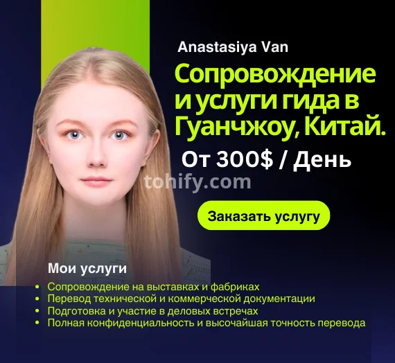 Здравствуйте! Меня зовут Анастасия Ван, и я профессиональный бизнес-гид и переводчик в Гуанчжоу, Китай. Я помогаю предпринимателям, компаниям и байерам эффективно работать с китайскими партнёрами, избегать ошибок и достигать реальных результатов.